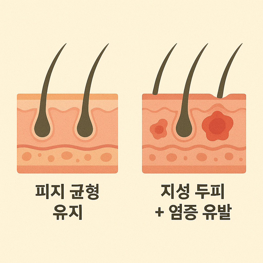 - 결과적으로 지루성 두피, 가려움, 탈모 유발 요인 증가