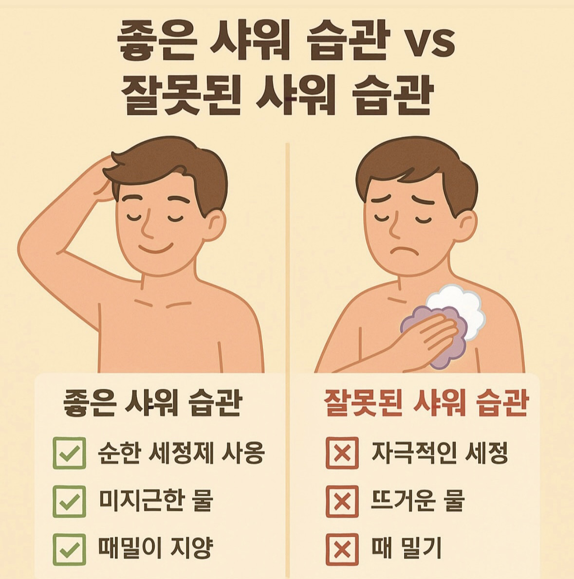 🧴 1. 매일 샤워하면 피부 보호막이 약해질 수 있어요
